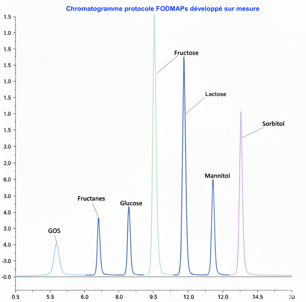 À notre connaissance, c’est la première fois hors Australie qu’un laboratoire peut mesurer tous les FODMAPs d’un aliment dans un protocole unique (et non pas sucre par sucre avec les méthodes HPLC classiques proposées en Europe). Ce résultat est le fruit d’un travail initié il y a trois ans par Fodmapedia, pour pousser les laboratoires à faire évoluer leurs méthodes.
